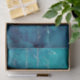 Iridescent Script on Abstract Teal Decoupage Tissue Paper