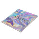 A teal, gold and purple iridescent, shiny metallic fabric design with personalized name.