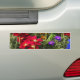 A riot of colorful spring flowers in bright red, blue, purple, pink, and orange. The focus is on a crimson flower in the foreground, with a rainbow of blooms surrounding it. This multi-colored 3D flower garden was created in Vue.
