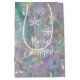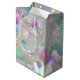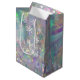 A modern iridescent tinsel themed holiday gift bag with snowflakes and Merry Christmas label. Contact the designer via Zazzle Chat if you'd like this design modified, on another product or would like coordinating items. See our collection of Angel Aura Quartz Crystal themed products with this tinsel background!
