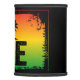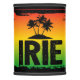 IRIE typographic lampshade, with tropical palm trees over a rasta flag coloured sunset