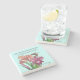 Pretty floral coaster of painted flowers. Colorful iris and butterfly on a cool mint background, with verse from Psalm 118:24. "This is the day that the Lord has made, let us rejoice and be glad in it!" Pretty gift of faith to give or keep for yourself.