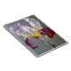 Fine art single flag iris floral notebook by Sarah Trett. this stunning Flag Iris artwork was featured in Artists & Illustrators 1998 to promote the Society of Botanical Artists Exhibition at Westminster, London. It is a past work but still a favourite. "I had a phase when I produced just flowers on a darker background so the viewer could appreciate how delicate the petals are" explains Sarah. Original painting by Sarah Trett www.sarahtrett.com