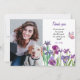Iris flowers birthday Thank You Card with pretty wild country flowers in purple, lavender, green leaves and more, with a brushed script typography on an elegant editable photo and background.