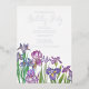 Iris flowers Birthday Party Invitation with silver text and watercolour