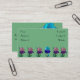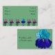 Business profile card. Five pink and purple irises and on blue and purple iris.