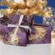 Warm purples with golden accents in a rich layering of fluid paint drips and artistic splashes. (This version of the design is sized at 18"across per each unique repeat, to best fit within the wrapping paper dimensions.)