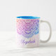 The Iris Mandala 11 oz. Personalized Mug features a vibrant design inspired the way a prism breaks light into individual hues. It adds meditative touch to your morning routine, or any time you need that sustaining cup of coffee, tea, or hot chocolate. Would also make a thoughtful gift for your favorite yoga teacher. Available in a 15 oz. version as well.