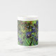 Irises was painted in 1889 while Vincent van Gogh was living at the asylum at Saint Paul-de-Mausole in Saint-Rémy-de-Provence, France, in the last year before his death in 1890. A stunning display of violet irises with vibrant green leaves, rich terracotta soil, against a back drop of bright orange marigolds and one single white iris. This image has been digitally enhanced to restore the original bold, bright colors and strong outlines. A perfect china mug for any art lover!