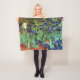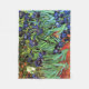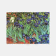 Irises was painted in 1889 while Vincent van Gogh was living at the asylum at Saint Paul-de-Mausole in Saint-Rémy-de-Provence, France, in the last year before his death in 1890. A stunning display of violet irises with vibrant green leaves, rich terracotta soil, against a back drop of bright orange marigolds and one single white iris.