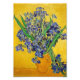 Irises in vase against yellow background, one of Vincent van Gogh's most famous floral still life paintings.