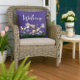Accent the decor of your porch or patio with this floral outdoor pillow. This pillow features a watercolor illustration of beautiful purple, yellow and pink irises on a purple background. You may edit this pillow to add your photo or text. An outdoor pillow would be a thoughtful housewarming gift..