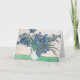 Irises (1890) | Original artwork by Dutch post-impressionist artist Vincent Van Gogh (1853-1890). The painting depicts a still life with a full bouquet of blue flowers on a green tabletop against a creamy white background.