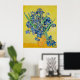 Irises (1890) Vincent van Gogh. Lovely positive still life. Large yellow vase with a bouquet of blue irises on a yellow background. Reproduction of famous works of art images in the public domain.