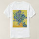 Irises (1890) Vincent van Gogh. Lovely positive still life. Large yellow vase with a bouquet of blue irises on a yellow background. Reproduction of famous works of art images in the public domain.