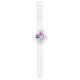 I only have one complaint. I ordered the watch with clear case and strap, and what was sent was white case and strap. I'm going to keep it because 1) it looks very nice in white, and 2) it would take too long to get a replacement made and sent in time for my occasion. Aside from the mix up with the color, the watch does look very good in white. The purple dial is actually sparkly which did not show in the online images. That was a nice surprise. If you like Swatch watches this is very similar to those. It's 33.6mm in diameter, 10.5mm thick, and 40.6mm lug to lug. Stainless steel case back says 3ATM/30m WR, so no swimming or showering or submerging this one. If you like Woodstock, this is a great choice.