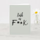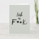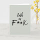 This greeting card features the phrase “Irish as F☘️☘️K” set on a muted sage-green background that feels calm while the lettering brings the spark. “Irish” sits near the top in smooth, flowing black lettering, like a gentle lead-in that softens the edge of what comes next. Below it, the “F” and “K” are larger and darker, with rough, brushy edges that make the statement feel loud and cheeky in the best way. Two solid black shamrocks replace the asterisks in the middle, adding a wink of humor and a little shared inside-joke energy between friends. The strong black text against the soft green field creates a striking contrast, like someone leaning in close to say something daring with a grin 💚. The layout stays simple and centered, keeping the eye moving from the graceful top word down to the punchy letters below. The shamrocks are small but crisp, sitting right where the missing letters would be, like two neat silhouettes stamped into the line.