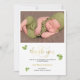 Thank your guests and show your Irish roots with this baptism card featuring movable green shamrocks in watercolor and a photo of the new baby. Upload your own image and place the shamrocks where you want them. Please note the faux gold script color comes from ink and is not metallic or foiled.
