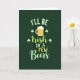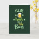This card features the funny line “I’ll be Irish in a few Beers” stacked down the center, with each phrase in a different style to keep your eyes moving. A golden beer mug sits near the wording, topped with thick white foam that looks like it just overflowed. Small shamrocks are sprinkled around the layout, adding a friendly St. Patrick’s Day touch ☘️. The background is a deep emerald green, and it makes the lighter greens, bright whites, and warm yellows stand out clearly 💚. “I’ll BE” appears near the top in simple white lettering, while “Irish” is set just below it in a smoother, flowing white style that feels a bit more flirty. “IN A FEW” pops in yellow across the middle like a quick pause before the punchline, and “Beers” stretches larger beneath it in a curving white style. The beer itself has tiny bubble details in the gold, and the shamrocks sit like little accents in the corners against the dark green field.