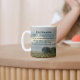 Enjoy a hot of cold beverage in this mug that features a photo image of rural farmland and sky along with a traditional Irish blessing in a green Celtic type style. Image and verse is printed on both sides of mug. Select your mug style and color.