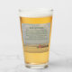 Pint glass for beer and other cold beverages that features a rural farming photo image of golden wheat fields and a red barn along with a traditional Irish blessing printed in green Celtic style lettering.