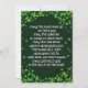 This beautiful Irish Blessing greeting card features the timeless Gaelic prayer, "May the Road Rise Up to Meet You." The front design showcases vibrant green shamrocks on a dark green background, symbolizing good luck and Irish tradition. The inside continues the blessing on a clean white background with green text, offering a heartfelt and elegant presentation. Perfect for St. Patrick's Day, weddings, farewells, or any occasion to send warm wishes of love and good fortune.