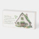 St. Patrick's Day wall art, wooden box sign featuring a watercolor illustration of a classic white Irish farmhouse with green shudders, a pair of wellies near the barn door, flowers in window boxes, two butterflies in the shades of the Irish flag, a baby lamb peaking out from the right of the barn, a black and white cow peaking out from the left of the home and a golden retriever laying in the front. To the left of the image, an Irish Blessing - May your troubles be less, your blessings be more and nothing but happiness come through your door in a green font and three floating watercolor green shamrocks centered on sign. Three sizes available. Image may need to be adjusted for varying sizes.