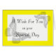 Sunshine yellow, the color of happiness and joy, optimism and warmth, is the most noticable color on the spectrum and arouses cheerfulness, making it the perfect backdrop to send your best wishes on. The front of this card may be customized to show any occasion - birthday, wedding day, graduation, anniversary, etc...The text, both on the front and the inside, may also be removed altogether if you just want a blank card to write on.