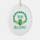 Lightweight, smooth, pure white ornament with nice sheen. Perfect size to be seen from across the room ... and to attract closer inspection! Price was great for ordering enough for the whole family! Clear, bold black design just as requested. Matches the order exactly. Just so nice!