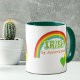 This is a great mug for St Patrick's Day and all through the year! It features a colorful rainbow with overlapping green and gold hearts at the end. In the middle of the rainbow is the stylized green text IRISH, and in orange, BY ASSOCIATION. Cute for the one who has lost their heart to an Irish man or Irish woman! *Clip art used in this design is copyrighted by Encore Software, Inc., which permits use to its licensors. All rights reserved.