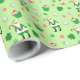 Creative Irish Christmas holiday gift wrap featuring funny Santa, carrying a candy cane surrounded by shamrocks and Christmas treats.