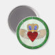 Well Designed High Quality Magnet. Colors are Vibrant Clear Excellent good size Diameter Circumference Fonts Red Folio Bold Clover Green Outline Puffy White Interior Image
