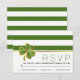 Irish clover green, white stripes wedding RSVP Card