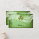 Irish clover and veil green Saint Patrick’s Day wedding place card featuring a green shamrock leaf with gold outline on a white waved veil on green grunge stained background. This modern wedding invitation design is part of a wedding set or wedding collection and is a fully customizable template perfect for an Irish St. Patrick’s Day wedding.