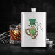 The product is a good size and came exactly as it was pictured. The lid is not attached to the flask, which could be dangerous on drunken nights... The print came out surprisingly well and looks very sharp. Would definitely recommend.