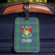 Stylish luggage tag with Irish County Donegal tartan plaid and the official coat of arms in center. Personalize with name or monogram in customizable white text.