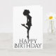 Silhouette Girl Irish Dancing Hard Shoe Toe Stand in Black and White Dance Happy Birthday Greeting Card. There is a small silhouette of a soft shoe leap on the back. Inside Greeting ~ "May All Your Birthday Dreams And Wishes Come True" ^