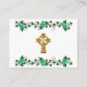 Irish wedding or anniversary party seating or place cards with gold Celtic cross, green roses and shamrocks trellis design. Custom designs by Irisangel