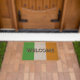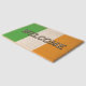 Irish flag coco coir doormat with custom text. Make your own personalized door mat for home, restaurant, hotel, business, office, company, shop, pub, cafe, bar etc. Add your own welcome message, family name, monogram, store name, logo or funny quote. Personalized doormat sign template. Create your own entry mat / rug for front door / entryway or hall. Customizable home decor / decorations for your house or store.