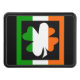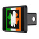 The traditional green, white, and orange stripes of the flag of Ireland fill up a traditional shamrock shape. The shamrock is framed in dramatic black, and bordered by the Irish flag stripes. Show your Irish side in bold style!