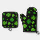 Irish Four-leaf Clovers Pattern Oven Mitt & Pot Holder Set