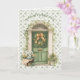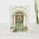 This St Patrick's Day card features a green front door on the front with a "Happy St Patrick's Day greeting in curved text on the top. The inside has a picnic scene in a patch of clover on the left and an Irish Blessing on the right. “May the road rise up to meet you. May the wind always be at your back. May the sun shine warm upon your face, and rains fall soft upon your fields. And until we meet again, May God hold you in the palm of His hand.”