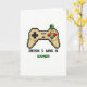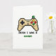 This card shows a retro, pixel-art video game controller centered on a bright white background, with chunky pixel edges that bring back classic 8-bit memories. The controller casing is sandy beige with a sharp black outline, and the D-pad plus two small center buttons are picked out in black pixels. On the right, the action buttons add pops of red, yellow, and green, and a single green joystick cap sits nearby like it’s waiting for two friends to take turns. The simple layout feels like a shared in-joke between close buddies, the kind that comes with a quick grin and an elbow nudge 💚. Beneath the controller, the phrase “IRISH I WAS A GAMER” is placed in one line, with “IRISH I WAS A” in black pixel lettering and “GAMER” in bright green ☘️. The green word ties back to the controller’s green details and gives a clear nod to St. Patrick’s Day without adding extra clutter. The overall composition stays centered and airy, with the beige controller above and the black-and-green text neatly aligned below on the white field.