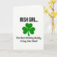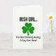 This greeting card features a white background with large black sans-serif text at the top reading “IRISH GIRL...” like a headline that grabs attention right away. Just below, a bright green three-leaf shamrock sits centered, giving the layout a lucky focal point ☘️. Under the shamrock, a slanted line of black text reads, “The Best Drinking Buddy, A Guy Can Have!” and it feels like a teasing note shared between close friends. The strong contrast of black lettering against white keeps everything easy to read, while the green clover adds a warm Irish touch 💚. With the words stacked in a simple top-to-bottom flow, the design suggests a fun bond, like someone proudly showing off their favorite partner-in-crime for the day. There’s plenty of open space around the elements, so the message feels direct without looking crowded. The shamrock is a flat, simple shape in solid green, centered between the two lines of text. Share St. Patrick’s Day sentiments with someone who’ll laugh at the “drinking buddy” line and smile at the green clover.