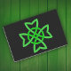Image is my original drawing of a green Celtic knot. The green is vibrant against a black background. See my store Art by MAR for matching products with this design.