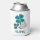 Irish Green Shamrock Clover Personalized Can Cooler. Hand-drawn four leaves shamrocks for luck. Add your name.