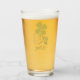 Irish Green Shamrock Clover Personalized Beer Glass. Hand-drawn four leaves shamrocks for luck. Add your name.