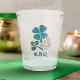 Irish Green Shamrock Clover Personalized Shot Glass. Hand-drawn four leaves shamrocks for luck. Add your name.