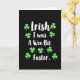 Designed with a deep black background, this St. Patrick’s Day card centers on the phrase “Irish * I was * A Wee Bit * Faster.” set in flowing white lettering that feels like it was written quickly for someone special. Small green shamrocks act like little star markers between the words, adding a flirty wink ☘️. The layout keeps the text as the main focus, with the lines stacked in the middle so your eyes move down the message in a smooth rhythm. The white lettering has gentle curves and slight irregular edges, giving it the look of an intimate note passed between friends. Bright emerald shamrocks pop against the dark backdrop, like tiny green sparks that keep the joke moving and the mood light 💚. The color pairing of white, green, and black stays simple, letting the phrase and symbols do all the talking. Several shamrocks are scattered around the lettering, with the densest cluster near the center line and a few spaced out toward the edges.