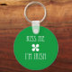 Green keychain that says "KISS ME I'M IRISH" in white with white clover.